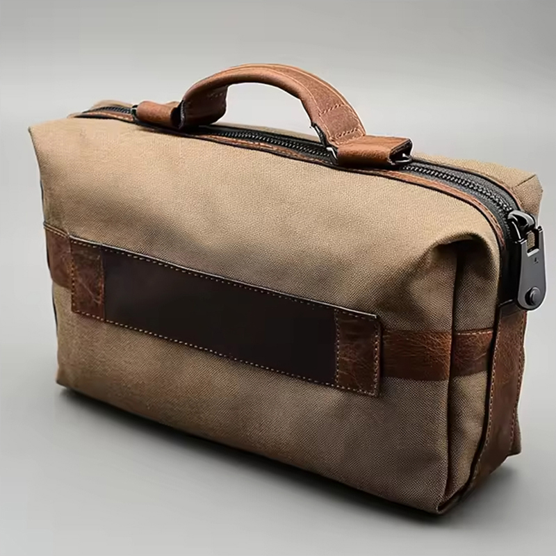 This men’s toiletry bag balances style with functionality. The classic canvas design, combined with the sleek PU leather details, gives it a modern and sophisticated look. Whether you’re using it for personal grooming or as a storage solution, this cosmetic bag is the ideal companion for anyone who values both style and practicality.