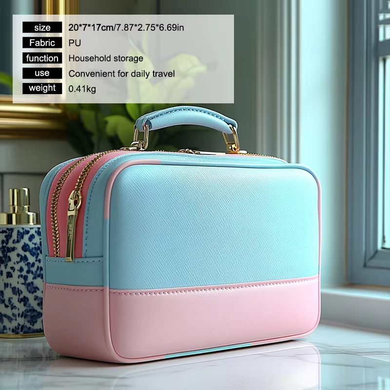 Made from high-quality waterproof PU leather, this cosmetic bag is resistant to water and humidity, ensuring that your products stay safe and dry. Whether you're caught in a rainstorm or just need extra protection during travel, this bag has you covered. Its smooth texture also adds a touch of elegance to your grooming routine.