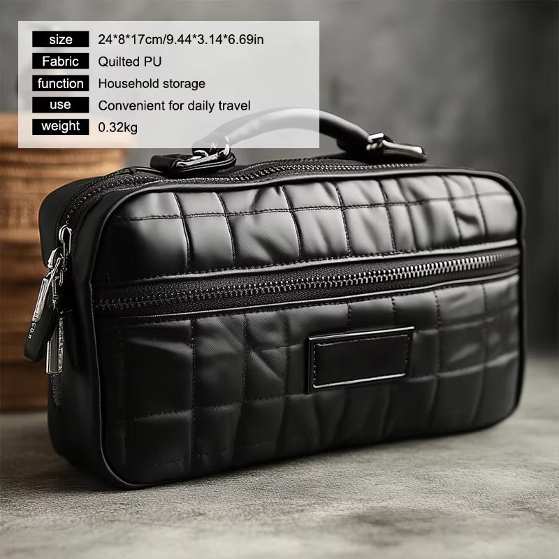 The PU fabric used in this bag offers a smooth, sleek texture that resists wear and tear, even with frequent use. Its lightweight construction doesn’t add unnecessary bulk, making it easy to pack in your suitcase or carry-on. The material is also waterproof, which ensures that your personal items are kept safe from water damage, no matter the weather conditions.