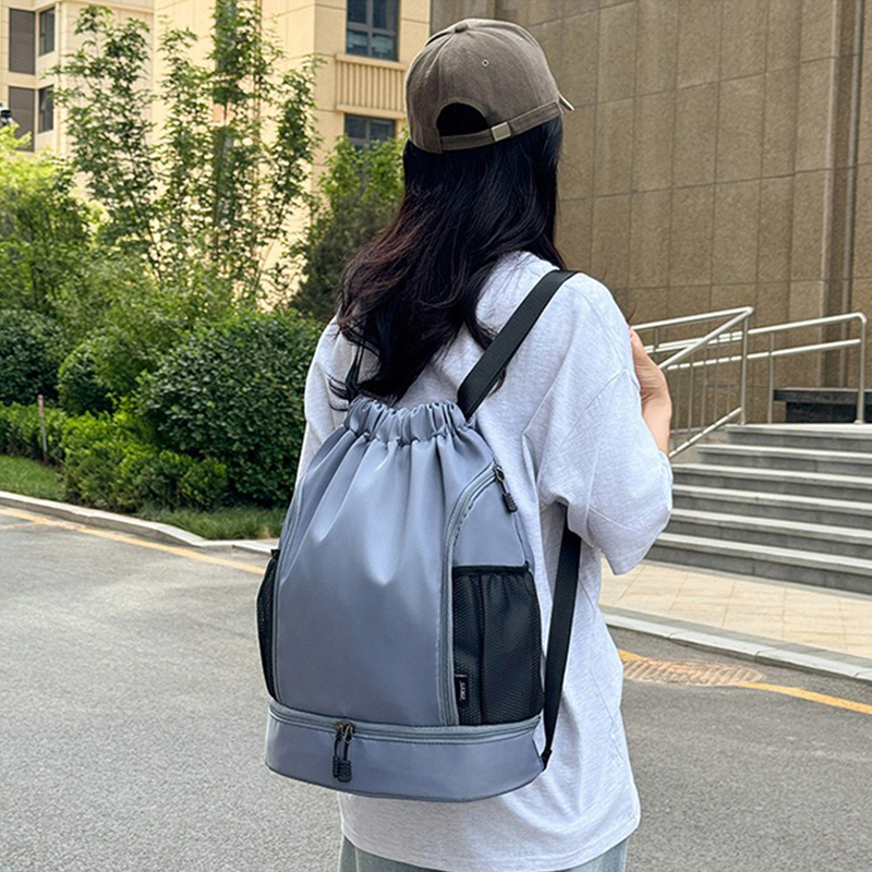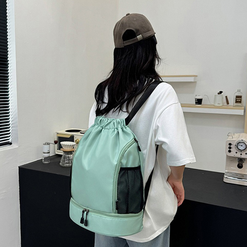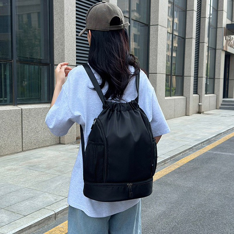 One of the standout features of the Large Capacity Portable Drawstring Backpack is its generous storage space. With a roomy main compartment, you can store a wide range of items including sportswear, sneakers, yoga mats, and even gym equipment. The bag's large capacity ensures that you can fit all your essentials without compromising on convenience or comfort. Whether you're heading to the gym, a yoga class, or a weekend getaway, this backpack has enough room to carry everything you need.