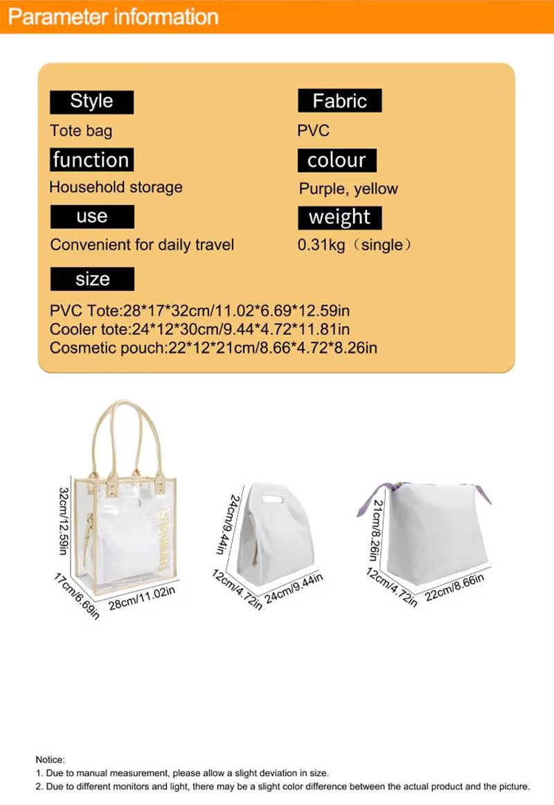 This bag is suitable for shopping, beach trips, picnics, or any activity where organization and cooling are helpful. Its transparent design adds a modern touch while making it easier to find what you need quickly.