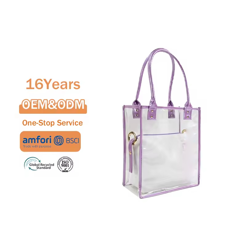 This Transparent PVC Shopping Bag combines modern style with practicality. The see-through design allows you to quickly locate your items, saving time while shopping or traveling. Its clean and minimal appearance makes it suitable for various occasions, from grocery shopping to outdoor events.