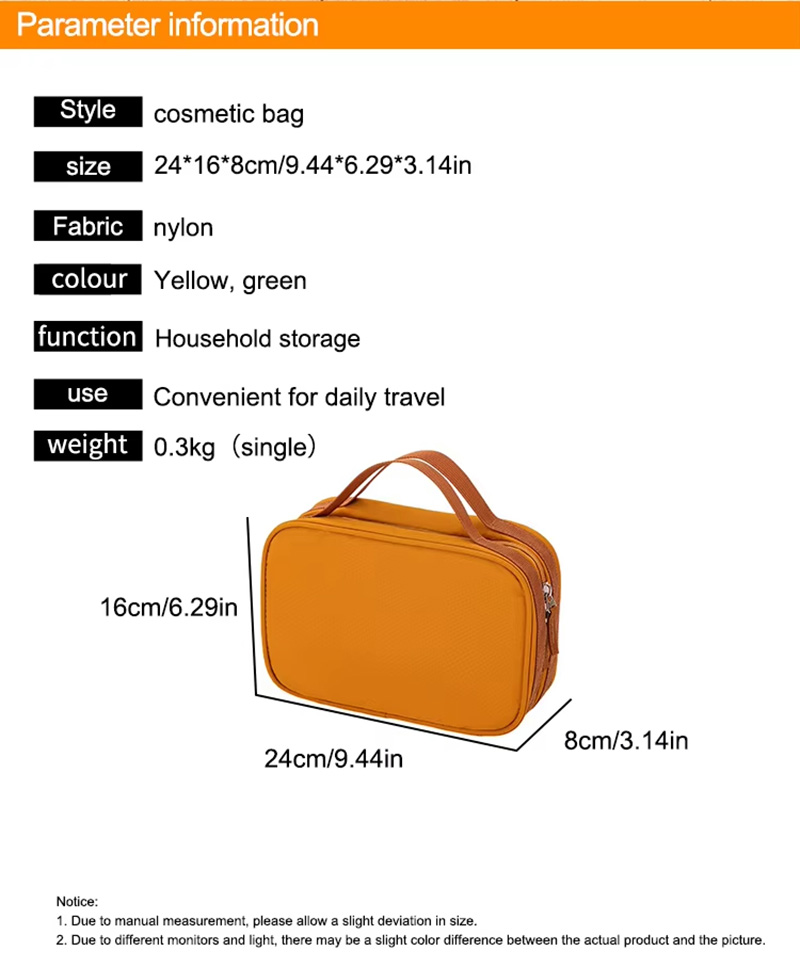 The Cosmetic Storage Toiletry Bag for Travel offers a practical, stylish, and durable solution for all your travel essentials. Its spacious interior, dual zippers, waterproof material, and compact design make it the ideal choice for anyone looking to keep their cosmetics and toiletries organized while on the go.