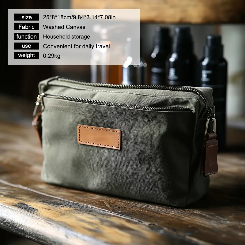 Beyond its travel use, the Waterproof PU Men's Travel Toiletries Cosmetic Bag also serves as an good household storage solution. You can use it to store your daily grooming products or any other small personal items you need to keep organized. Its compact size ensures it won't take up too much space, while the waterproof material adds an extra layer of protection for your belongings.